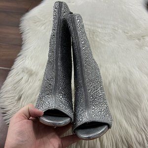 Steve Madden Size 6.5 Silver Dispute R Embellished Peep Toe Stiletto Boot