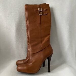 Steve Madden Size 8 1/2 Cognac Leather Knee High Boots with Covered Platform