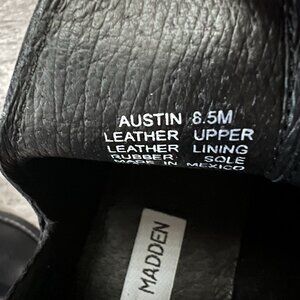 The Steve Madden Size 8.5 Austin Black Leather Booties are stylish ankle boots perfect for various occasions such as parties, casual outings, or business events. With a pointed toe and low heel, these booties are made of high-quality leather and feature a pull-on closure for easy wear. The cut-out side detail adds a modern touch to the classic black color, making them a versatile and fashionable choice for the winter, fall, and spring seasons.