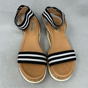 Steve Madden Size 8.5 Elba Sandals Black White Strap Platform Wedge Chunky Shoes