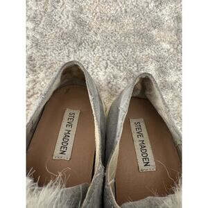 Steve Madden Size 8M Faux Fur Suede Pom Pom Puff Ball Gray Sneakers Pull On