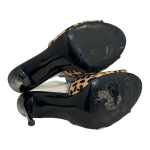 Steve Madden Size 9 Sinful Animal Print Calf Hair Leather Peep-Toe Mules