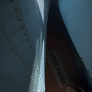 There’s a small paint mark on one heel in a slightly different shade of blue than the boots — it’s very discreet and not visible when worn.
