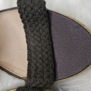 Steve Madden Women's Skylar Wedge Sandal Size 10 Olive Crochet Strap Espadrille. Olive green upper with brown back. Gold buckle