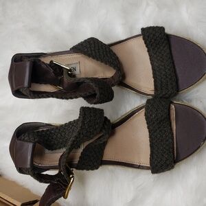 Steve Madden Skylar Wedges Olive Woven buckle 10
