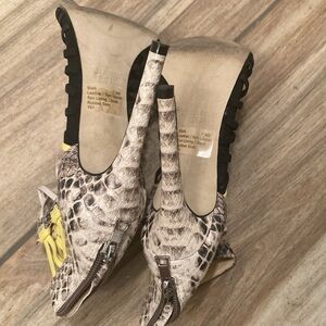Gently used Steve Madden Sleik Multicolor Snakeskin Caged Stilettos in Yellow, Cream and Black.