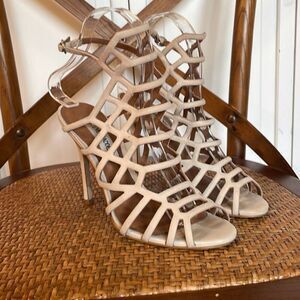 Steve Madden Slithur beige caged ankle strap heels size 6