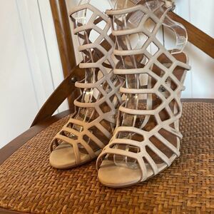 Steve Madden Slithur beige caged ankle strap heels size 6
