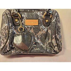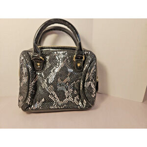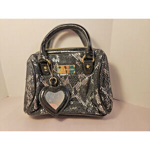 Steve Madden Small Cloth Bag Purse Black & Silver with Heart Shaped Mirror