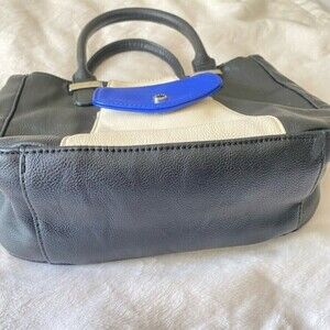 Beautiful Medium size cross body handbag. Open top, various compartment. Blue accent pocket in front.