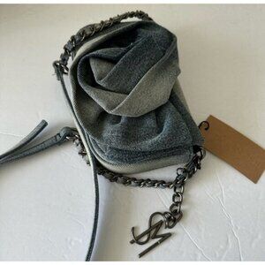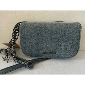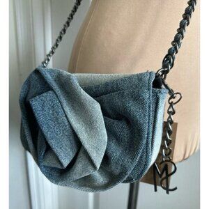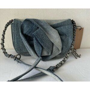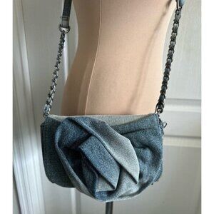 Steve Madden Small Washed Denim Borla Crossbody Handbag 3D Rose Flower