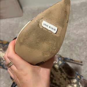 Chic boots with a snakeskin design. Features a blend of cream, brown, and gold tones.