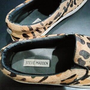 Steve Madden Sneakers, Slip-On Leopard Print Faux Suede, Size 8.5