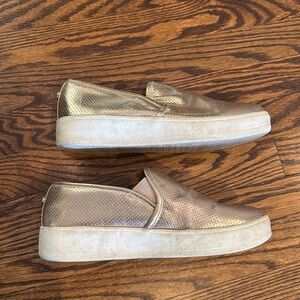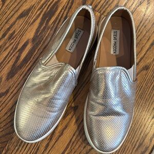 Steve Madden Sneakers Womens Size 8.5 Gold Perforated Slip On Casual Platform