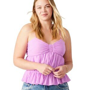 This gorgeous Steve Madden “Solange” top features a ruched bust, spaghetti straps, and a flowy peplum hem for a flattering and feminine silhouette. In a soft purple hue, it’s perfect for spring and summer events, date nights, or dressing up your everyday style.