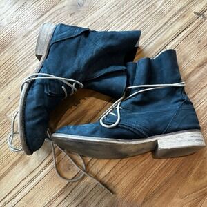 Steve Madden Soluri Women’s Distressed Washed Black Leather Tie Up Booties