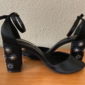 Steve Madden Starburst Satin Heels. Worn once, star jewels on inside of both heels missing as shown.