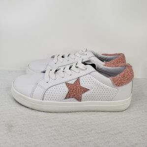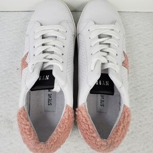 Steve Madden Stared Faux White Leather Faux Pink Sherling Sneaker Sz 7.5M