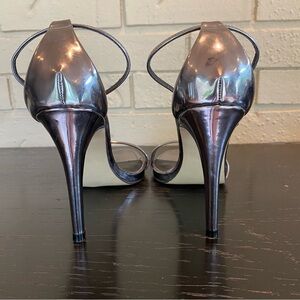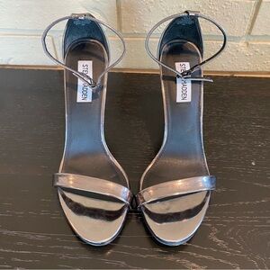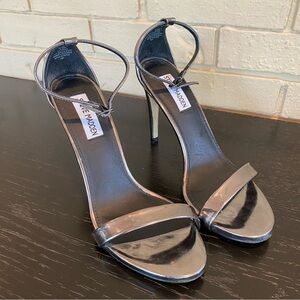 Steve Madden Stecy women sz 8.5 metallic silver ankle strap open toe heels Sexy