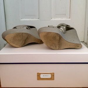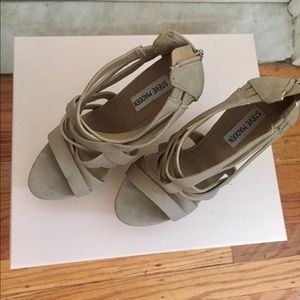 Awesome strappy platform heel from Steve Madden in a goes-with-everything tan. Love these and the 5" heel. Only worn a few times
