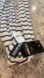 Chic infinity scarf by Steve Madden. Features bold blue stripes on a white background. Ideal for versatile styling.