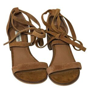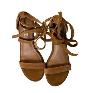 Steve Madden Suede Ankle Tie Block Heel Sandals Rizzaa Tan 7.5