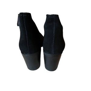 Steve Madden Austin Suede Pointed Toe Pull On Ankle Heeled Bootie Leather Black