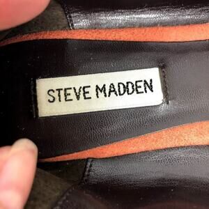 Sweet staple pair of Fall Color combo brown and orange leather suede ballet style flats with bow detail by Steven Madden. Toe has a quilted texture.