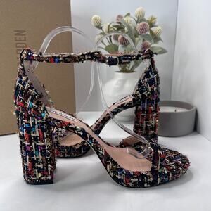Steve Madden Susan Multi Tweed Platform Chunky Heels Black Multicolor Women 10 M