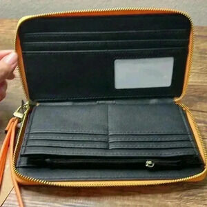 - Steve Madden ORANGE Zip around Logo wallet/ wristlet with detachable handle