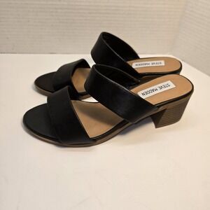 Steve Madden Swift Leather Cognac Block Heel Double Strap Sandals Women's 7.5