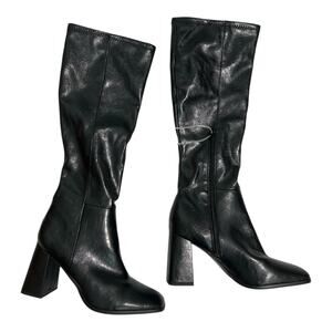 Steve Madden Sz 8.5 M Livah Women's Boots Knee High Square Toe Black Block Heel