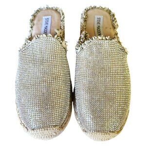 Steve Madden TROPEZ Rhinestone Encrusted Slip-On Espadrille Mules Women's SZ 7.5