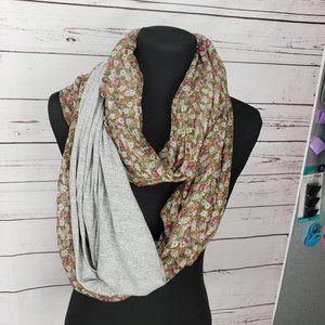 Steve Madden Tan Brown Floral Reversible Gray Infinity Scarf
