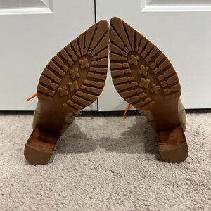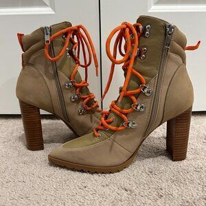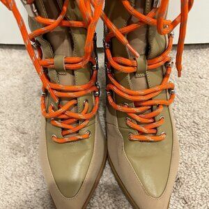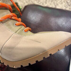 - Color: Tan boots with orange laces