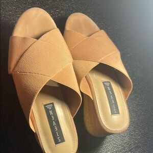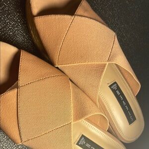 Step into effortless style with the Steve Madden Tan Mules, featuring a soft suede-like material and wide crisscrossing bands for a chic, minimalist look. These slip-on shoes offer a flat sole and an open back design, perfect for casual summer outings. The neutral tan color ensures versatility, making them a staple in any wardrobe.