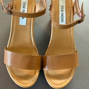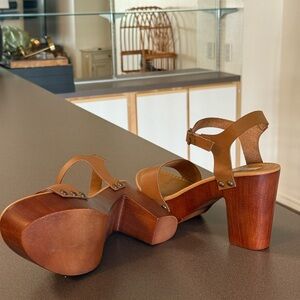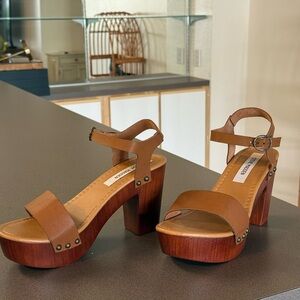 Steve Madden Tan Platform Shoes with Wooden Heel