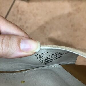 Steve Madden Tan Stepout Peep Toe Heels. There is an ankle strap, as shown in photos above. There is some wear on the back, and bottom of the heels. As shown in photos above. But in otherwise great preowned condition. Feel free to make a reasonable offer!