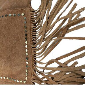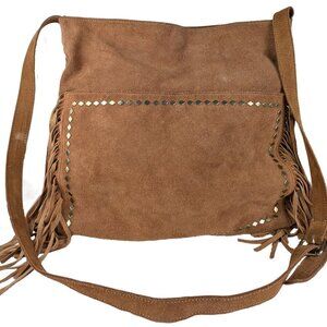Steve Madden Tan Suede Studded Boho Western Cowgirl Fringed Shoulder Bag