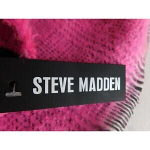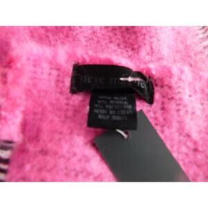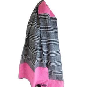 Steve Madden Neon Pink Black White Striped Plaid Scarf Wrap New