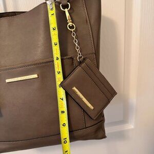 STUNNING Steve Madden Large Deep Taupe Tote with detachable credit card/ID holder wallet with gold accent in "LIKE NEW" excellent pre-loved condition; see dimensions in photos.