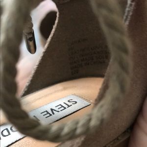 These are Steve Madden Taupe suede Carahh shoes in size 8 (US). Worn ONE TIME. They are in as-new condition and SO CUTE! They have a 3.25" heel height and are 3.5" across the sole at its widest point. They retailed for $110 and we're bought for $70 at DSW! No box