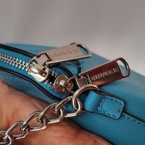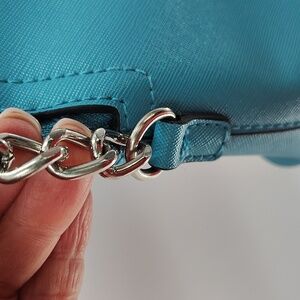 Steve Madden Teal Blue Zip Top Partial Chain Strap Crossbody Bag