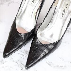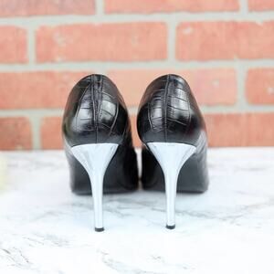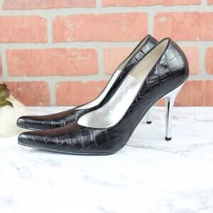 Steve Madden Terrah Black Croc Leather Silver Stiletto Pointy Toe Heels Size 8B