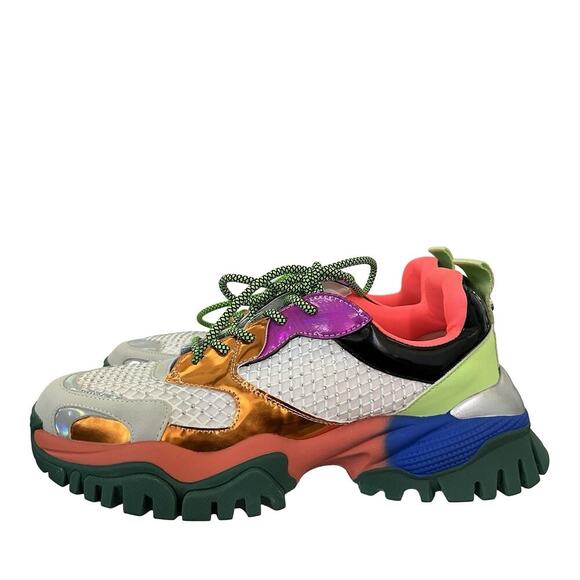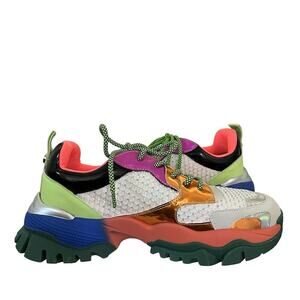 Steve Madden Thrilling Rhinestone Lace Up Platform Sneaker Size 9 Colorful Disco