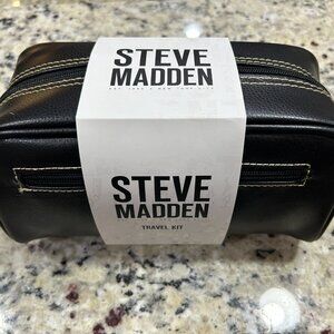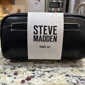 Steve Madden Toiletry Bag Travel Kit Black Top Zipper End Carry Strap. Bag measures approximately 9X5.5X4. Makes a great gift! New with tag.