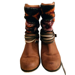 Steve Madden Tolteca Boots Womens Size 6 Cognac Leather Southwest Mid Calf Boho