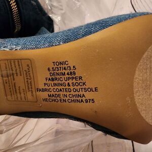 New without box. There is some peeling on the insole.