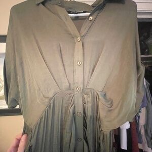 Hard to let this one go because this olive green color is hard to find in dresses. Super silky soft to touch and brings elegance to any wardrobe. This dress is cute with sandals or dresses up with heels. My favorite is fall boots and a hat with dress!