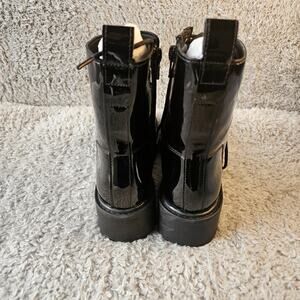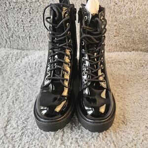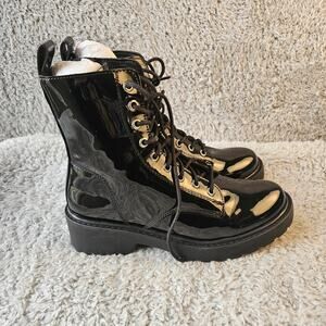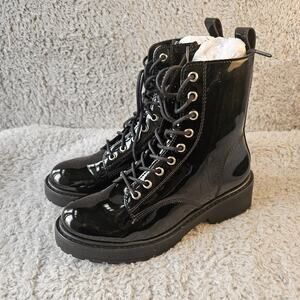 Steve Madden Tornado Lace-Up Chunky Heel Combat Ankle Boots Patent Black 7.5M